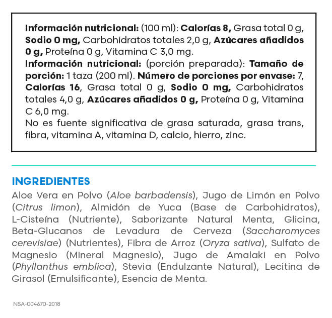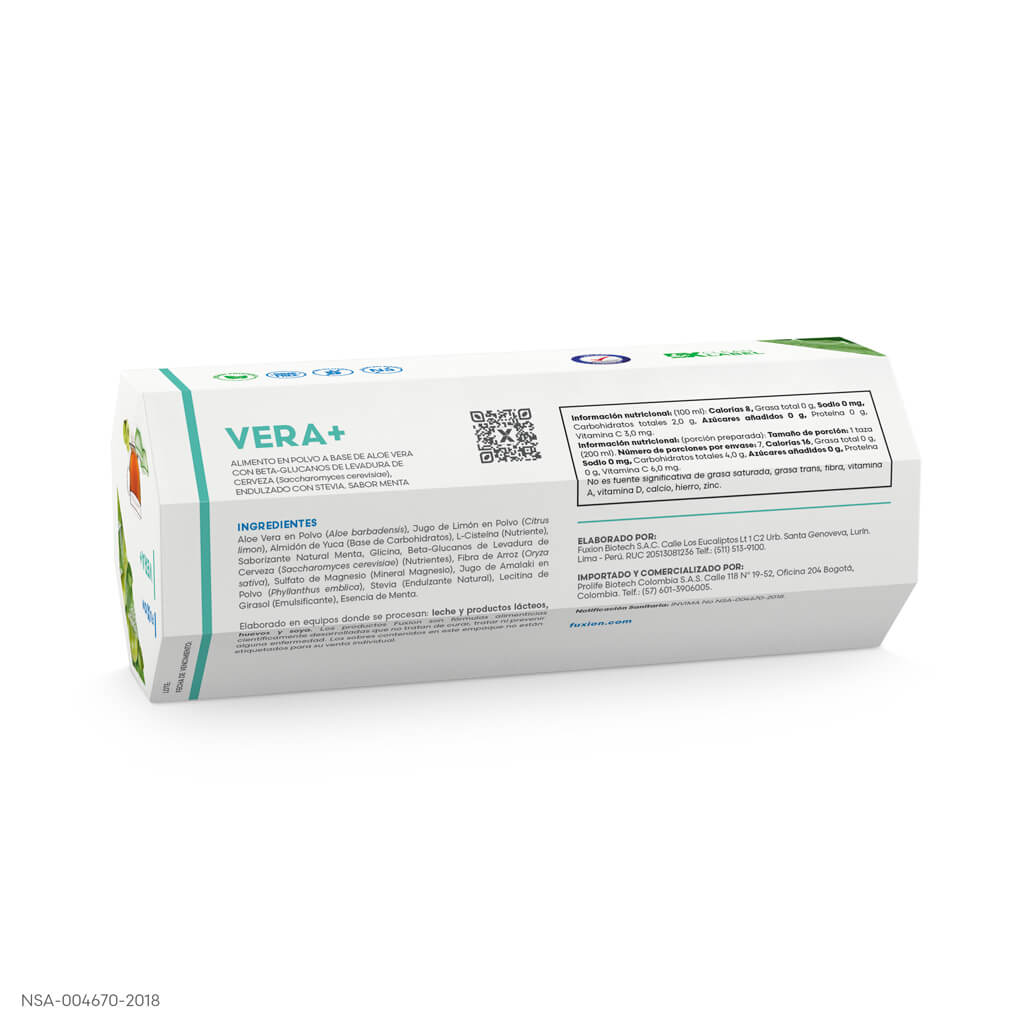 VERA+ FuXion presenta un té de menta con Aloe Vera enriquecido con las fórmulas patentadas Wellmune WGP y OliActive, diseñado para fortalecer el sistema inmunológico, proteger las vías respiratorias y prevenir alergias. Esta combinación nutracéutica incluye extracto de Aloe Vera, betaglucanos Wellmune, Amalaki, extracto de hojas de oliva, vitamina C y un mix de aminoácidos que mejora la salud general. Su fórmula contribuye a aumentar la resistencia contra enfermedades respiratorias estacionales, reducir la viscosidad de las secreciones bronquiales y potenciar el poder antioxidante celular del sistema respiratorio.